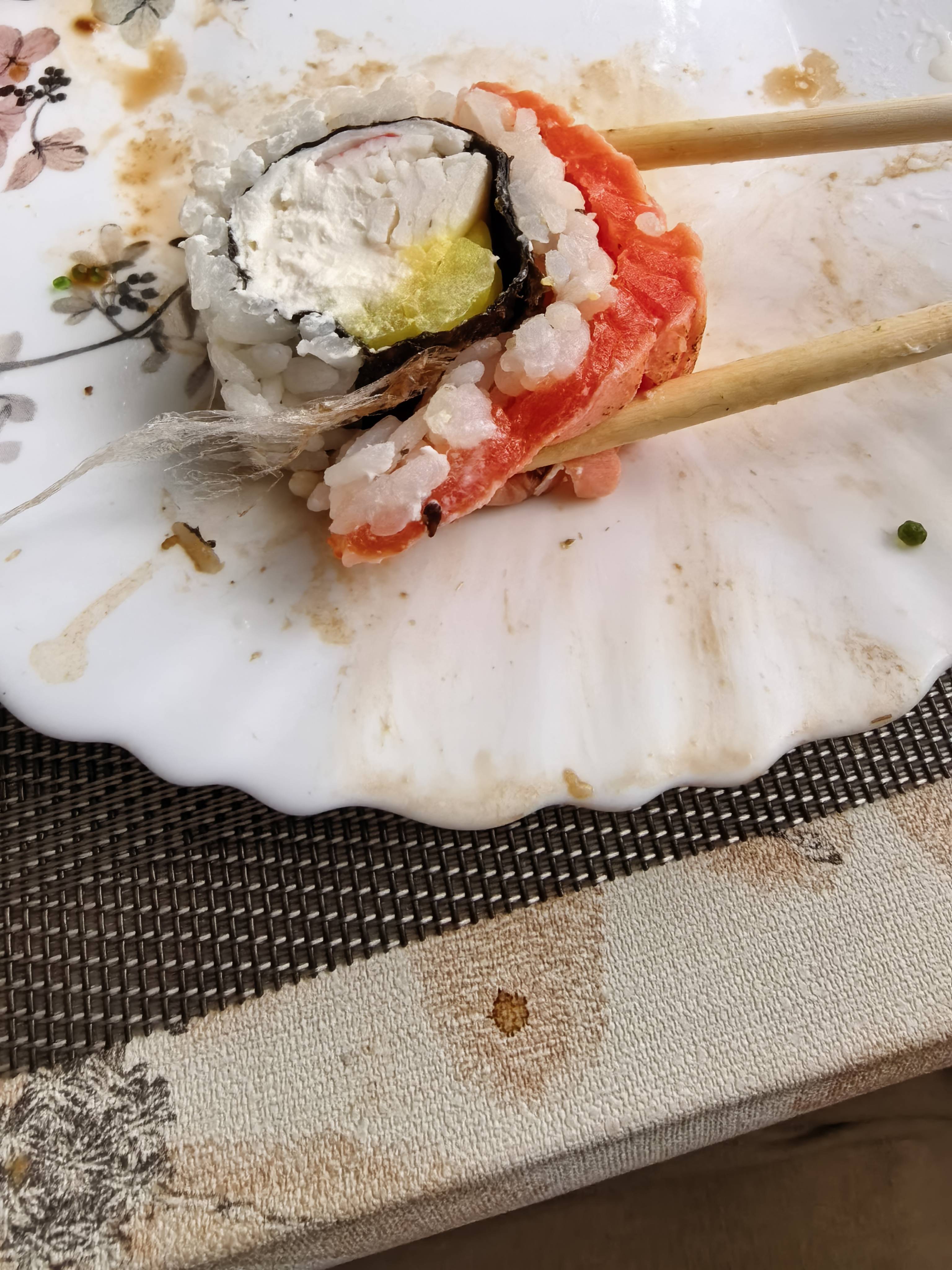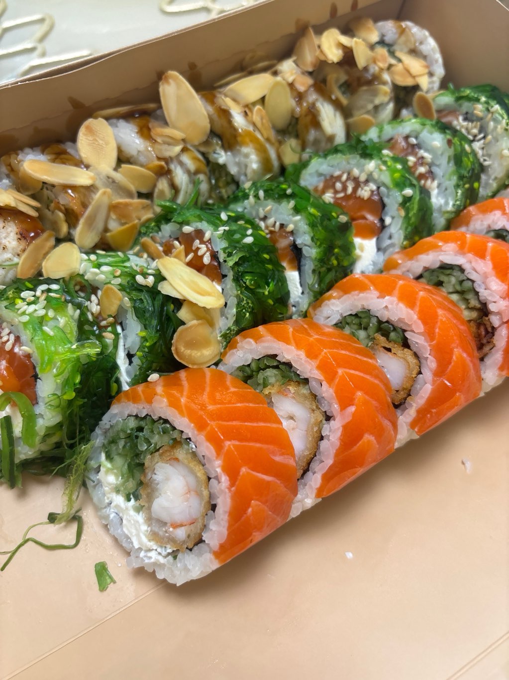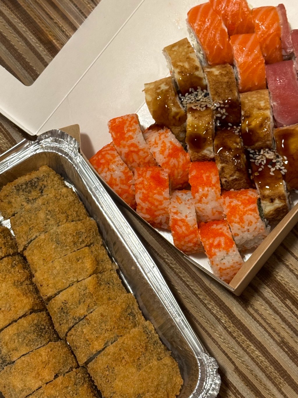 Суши очень большие,рис не разварен,начинки очееень много,рыбка порезана большими слайсами и свежая
